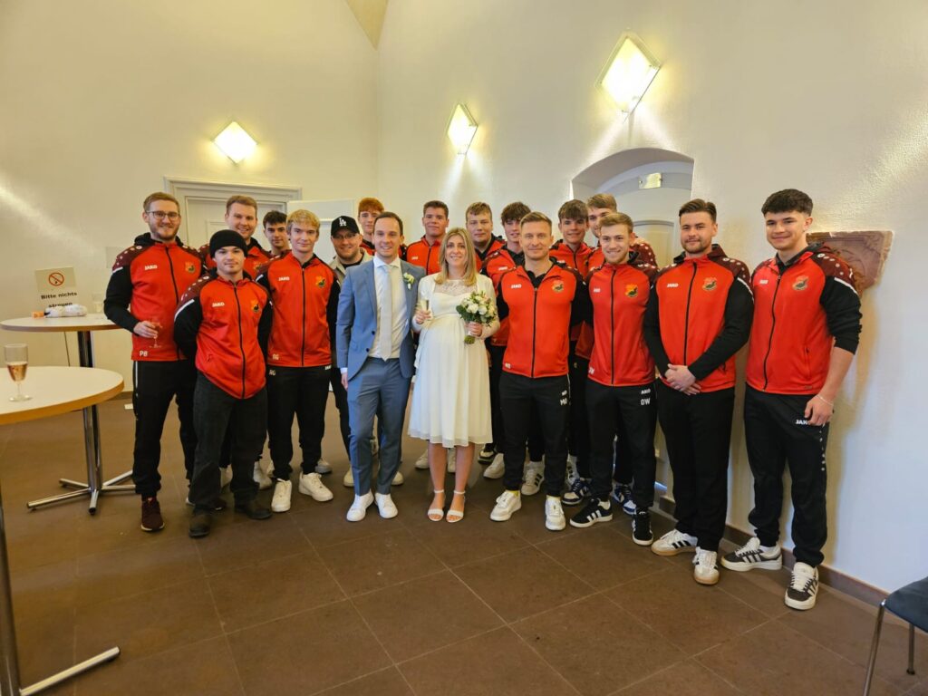 Der FV Neuthard war selbstverständlich mit der Mannschaft vor Ort, um dem Paar persönliche Glückwünsche zu überreichen. Die FVN-Familie wünscht den beiden alles Gute für ihre gemeinsame Zukunft.