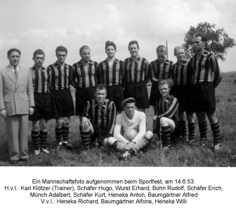 Knieend von links: H. Veith, U. Holzer, U. Veith, K-D. Schäfer, A. Eiche, F. Meinzenbach, R. Haupt, F. Dobler, Spielausschuss F. Schäfer