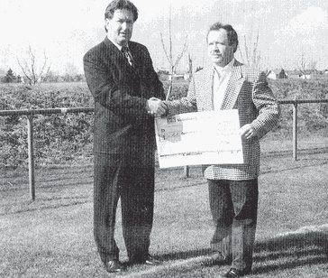 Dass die Germanen auf Unterstützung angewiesen sind, hat auch der FV Neuthard erkannt. Der stellvertretende Vorsitzende Wilfried Schäfer hatte die Idee, zu einem Benefizspiel am 20. Februar 1994. Eine kombinierte Mannschaft des FC Karlsdorf und FV Neuthard trat dabei gegen den Landesligisten FV Huttenheim auf dem Neutharder Sportgelände an. Dass der Besuch dort leider nicht ganz den Erwartungen entsprach, lag teils an dem widrigen Wetter. Zwei Wochen später beim Derby der beiden Karlsdorf-Neutharder Fußballmannschaften im Kohlfahrtstadion, wurde ein Scheck mit dem Erlös vom Benefizspiel und einem Spendenbetrag des FV Neuthard an den 1. Vorsitzenden des FC Karlsdorf Roland Weschenfelder überreicht.